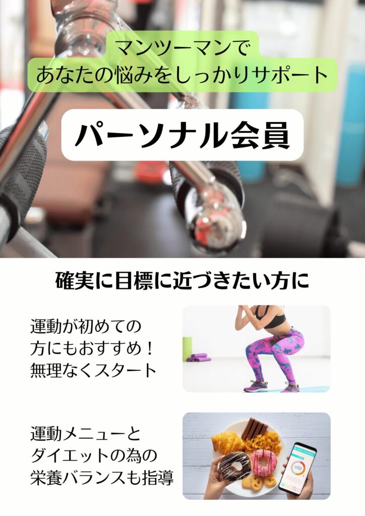 初めてのトレーニングや、しっかりサポートを受けながら運動を続けていきたい方におススメ。